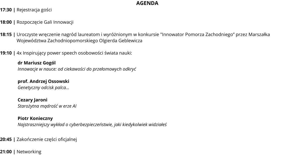 PIERWSZA GALA INNOWACJI pn. "WIECZÓR INNOWATORÓW"